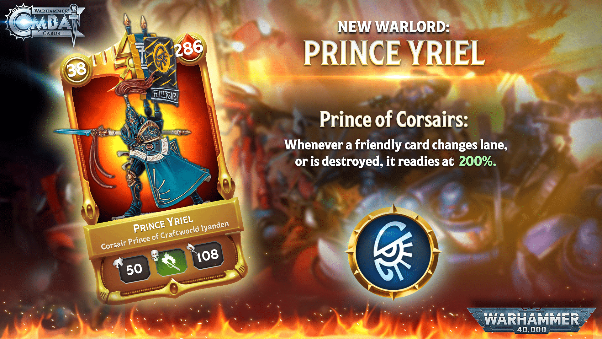 While Prince Yriel may be a familiar face in Combat Cards, this week we’re introducing his Warlord incarnation. Much with other Warlords with a bodyguard card, both will not be playable in the same deck.