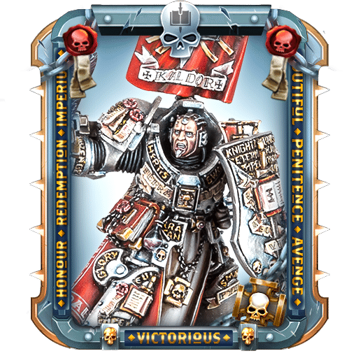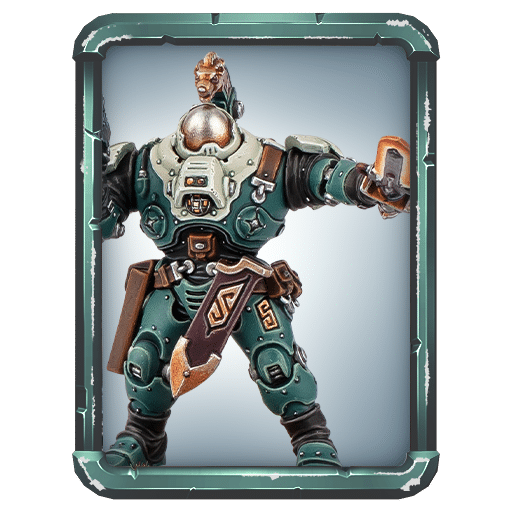 Guardians of the Golden Throne: If a friendly card has 50% or more base Wounds remaining, boost its attack stats by 40%. If it has less than 50% base Wounds remaining, reducing incoming damage by [-30 -> 50%].