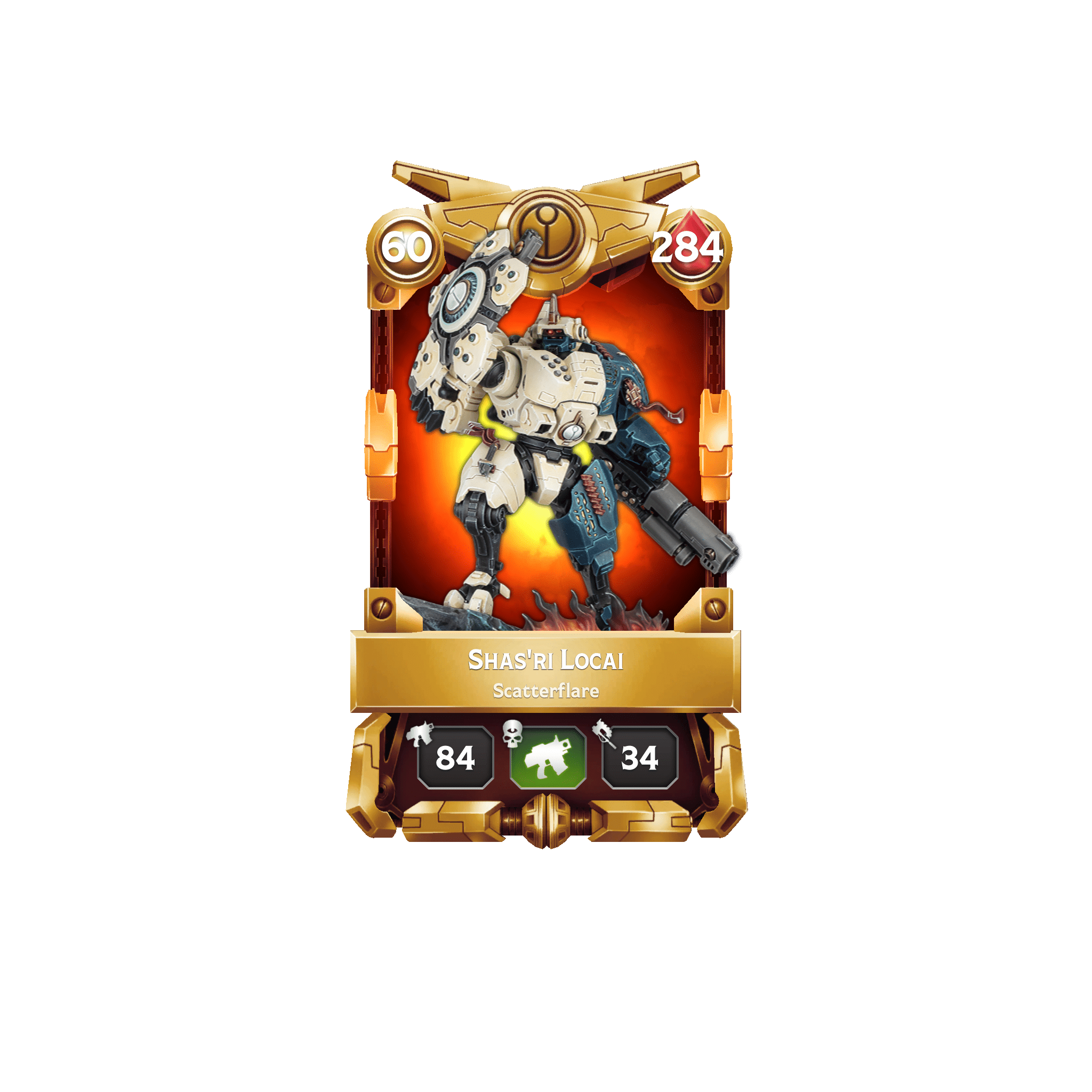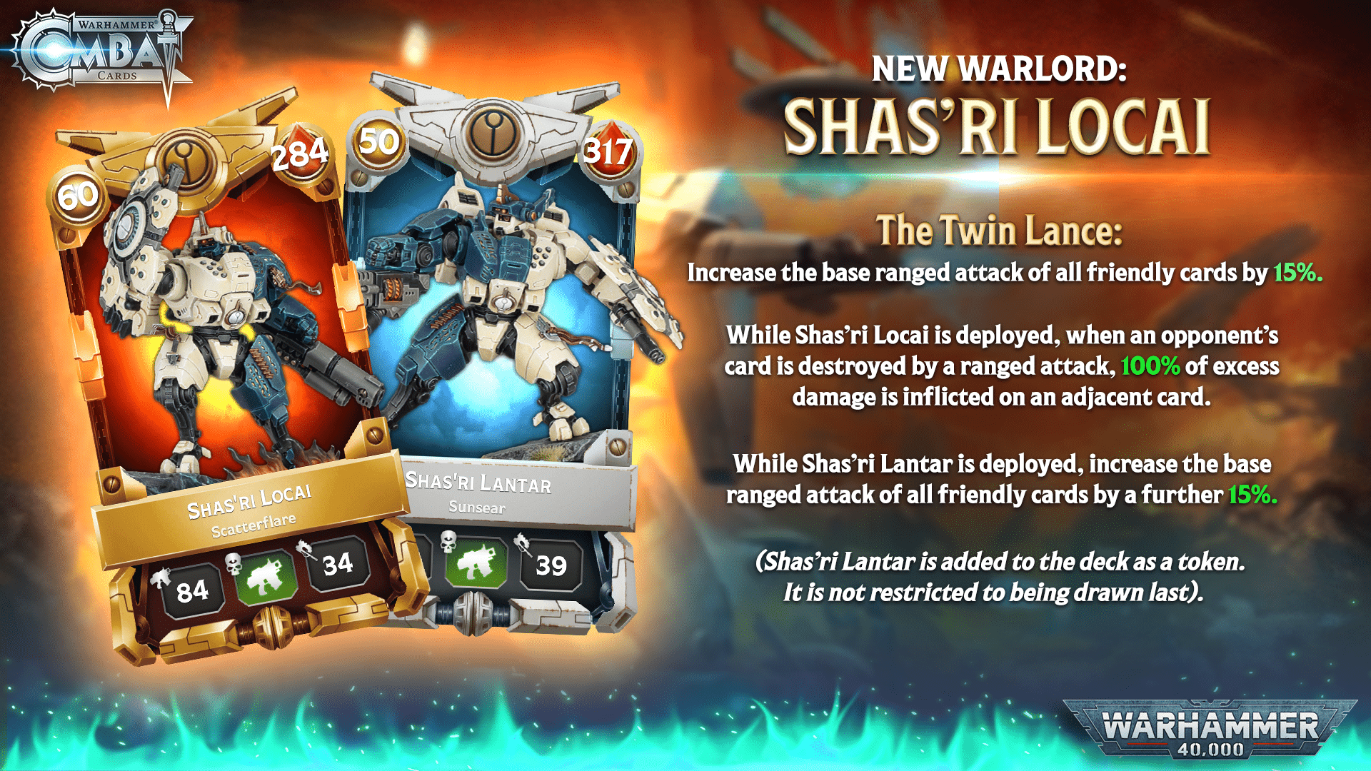 While Shas’ri Lantar is deployed, increase the base Ranged attack of all friendly cards by a further 15%.