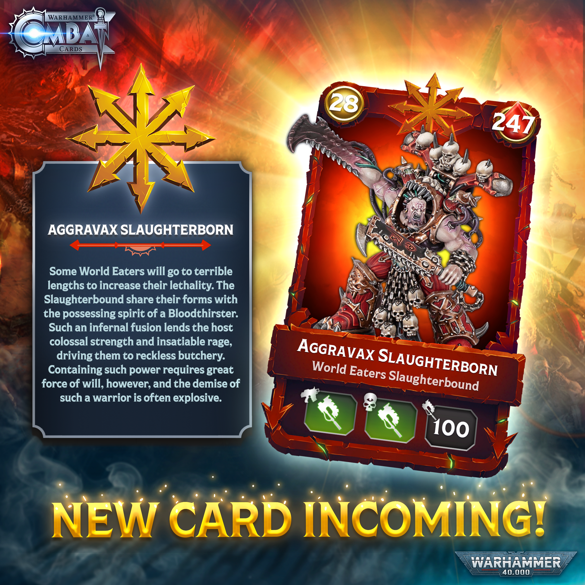 Khorne Victory Packs have arrived, and they’re filled with Chaos. Each one holds 8 cards soaked in war and wrath. Keep an eye out for these Victory Packs!