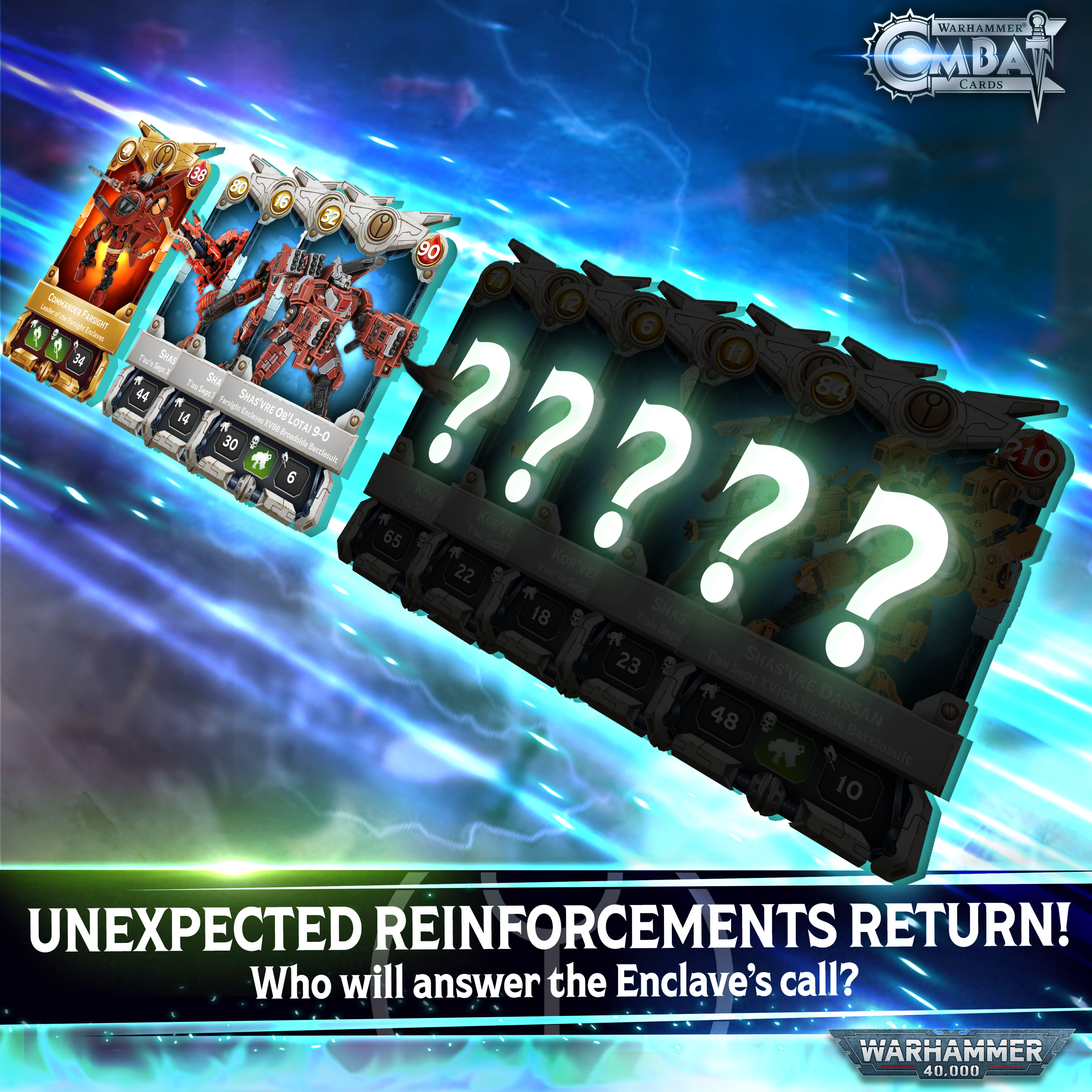 Take command of Commander Farsight at levels 5, 10, 15, and 20 in a unique challenge. With the Unexpected Reinforcements modifier, five random T’au units will join your deck in every battle.